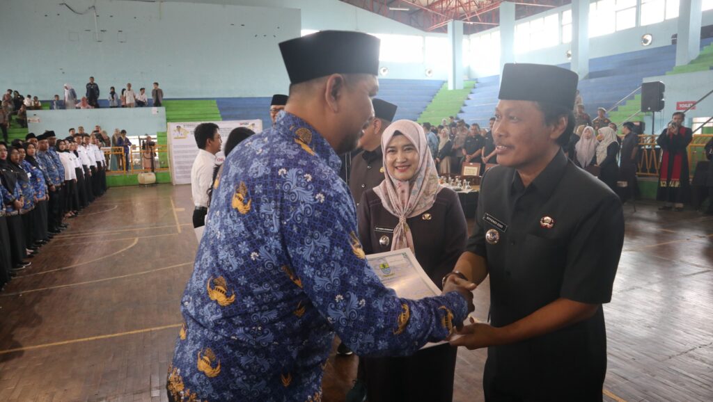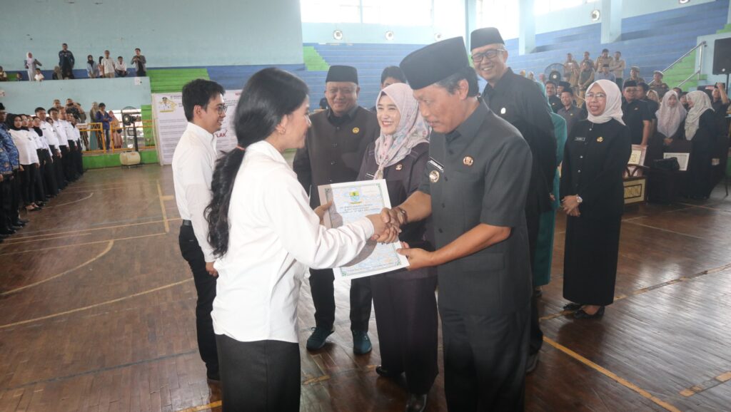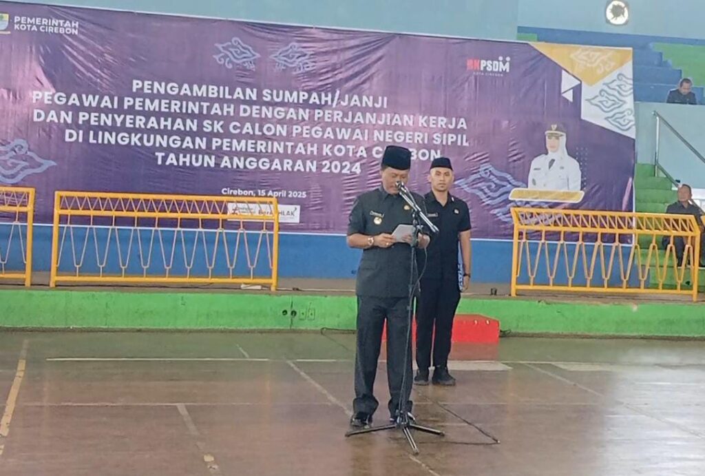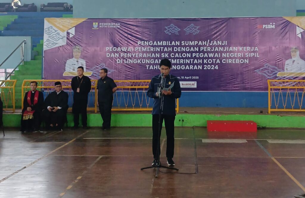 Cirebon, 15 April 2025 – BKPSDM Kota Cirebon menyelenggarakan kegiatan Pengambilan Sumpah/Janji Pegawai Pemerintah dengan Perjanjian Kerja (PPPK) dan Penyerahan Surat Keputusan (SK) kepada Calon Pegawai Negeri Sipil (CPNS) formasi tahun anggaran 2024. Kegiatan ini berlangsung di Sport Hall Bima, dan dihadiri oleh sejumlah pejabat penting serta tamu undangan.