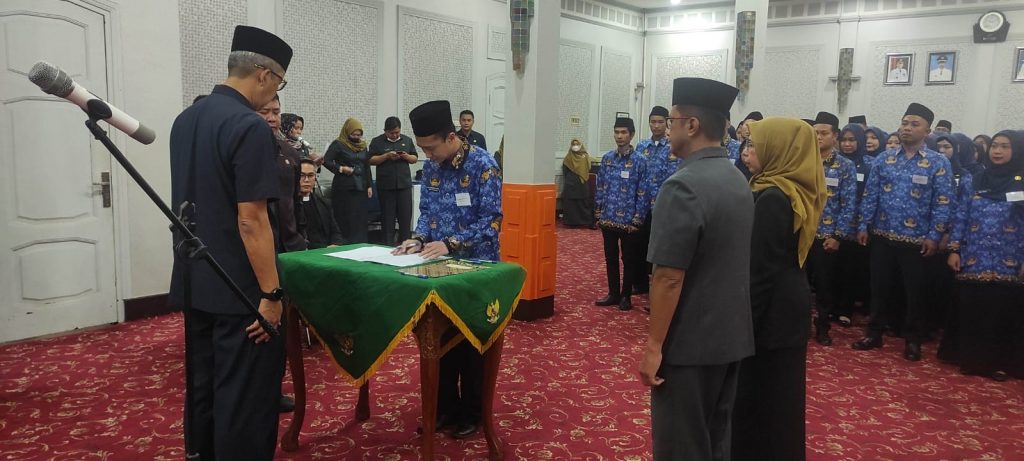 Sekretaris Daerah Kota Cirebon Drs. Mulyadi, M.Si Mengambil Sumpah dan Menyerahkan Petikan Surat Keputusan Pengangkatan Pegawai Pemerintah Dengan Perjanjian Kerja (PPPK) Tenaga Kesehata di Lingkungan Pemerintah Daerah Kota Cirebon Formasi tahun 2022 kepada 72 orang pegawai, Kamis (06/4). Pelantikan dan Pengambilan Sumpah dilaksanakan di Ruang Adipura dan Penyerahan SK PPPK dilaksanakan di Lobby Gedung Sekretariat Daerah Kota Cirebon Jalan Siliwangi Kota Cirebon.