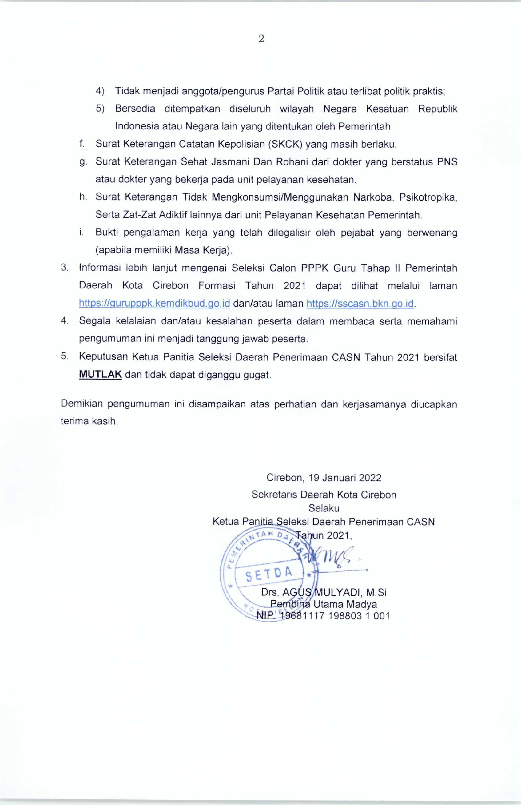 Pemberkasan Penetapan Nomor Induk PPPK Guru Tahap II Pemerintah Daerah Kota Cirebon Formasi Tahun 2021
