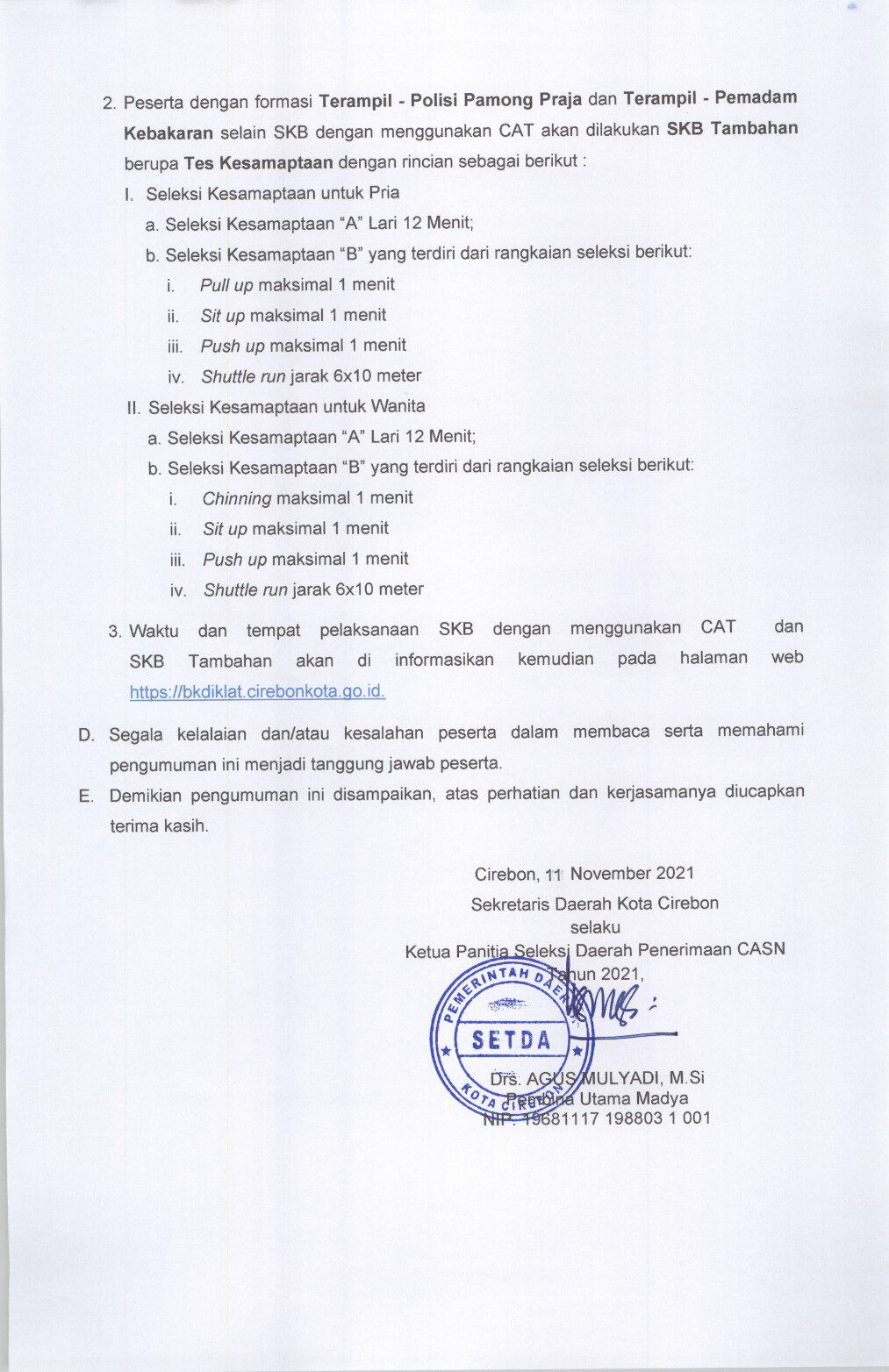 Pengumuman Hasil Seleksi Kompetensi Dasar (SKD) CPNS di Lingkungan Pemerintah Kota Cirebon Tahun 2021