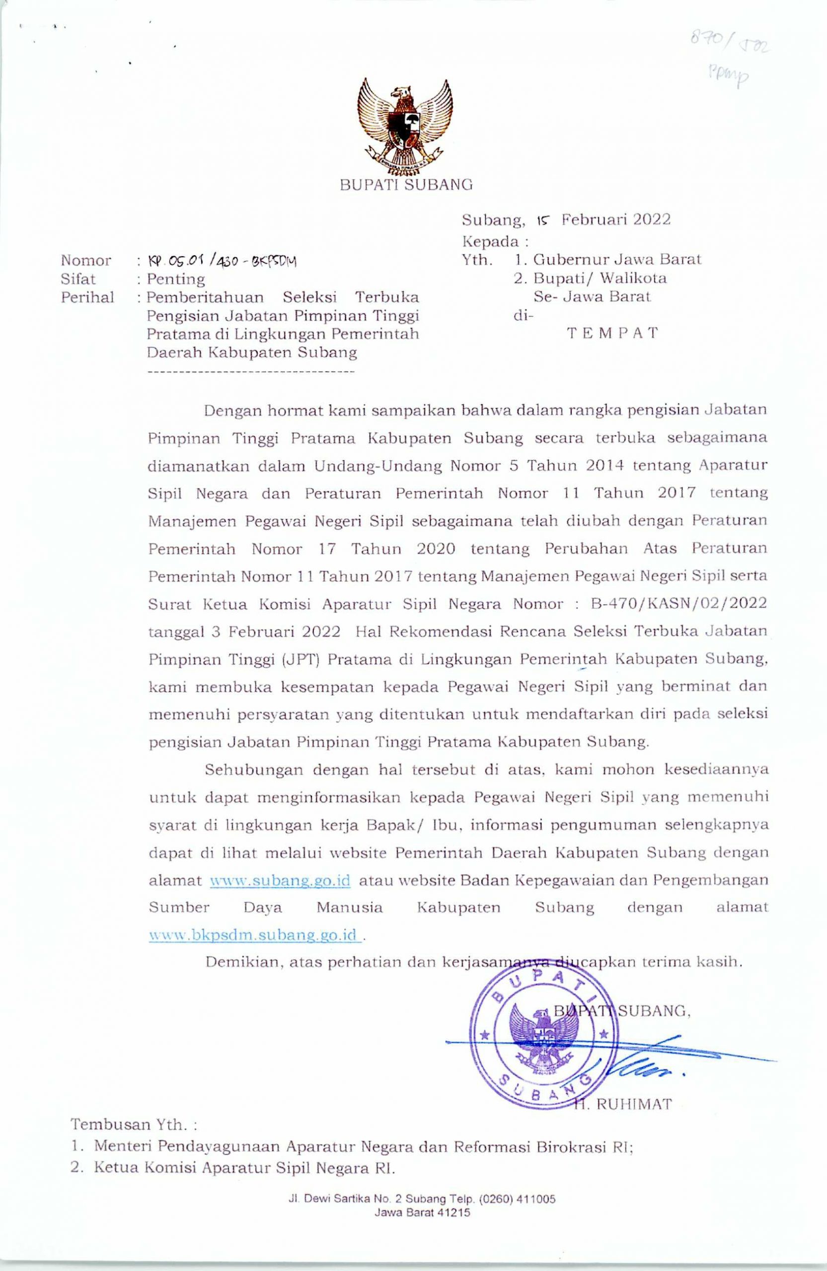 Pengumuman Seleksi Terbuka Pejabat Pimpinan Tinggi Pratama di Lingkungan Pemerintah Kabupaten Majalengka Tahun 2022